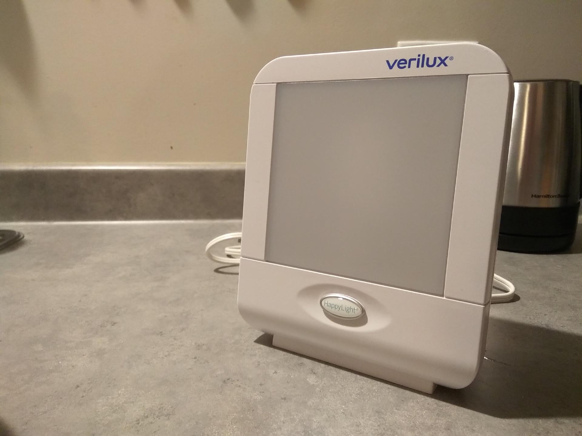 Thanks to Amazon Prime’s same/one day shipping, a solution to this problem was less than 24 hours away. Introducing my new light therapy lamp!