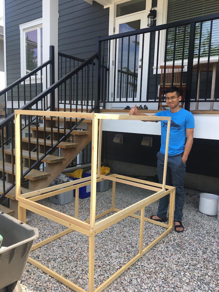 After doing some rough sketching, we settled on dimensions of our coop. We put the frame together to get a feel for how big this thing would actually end up being!