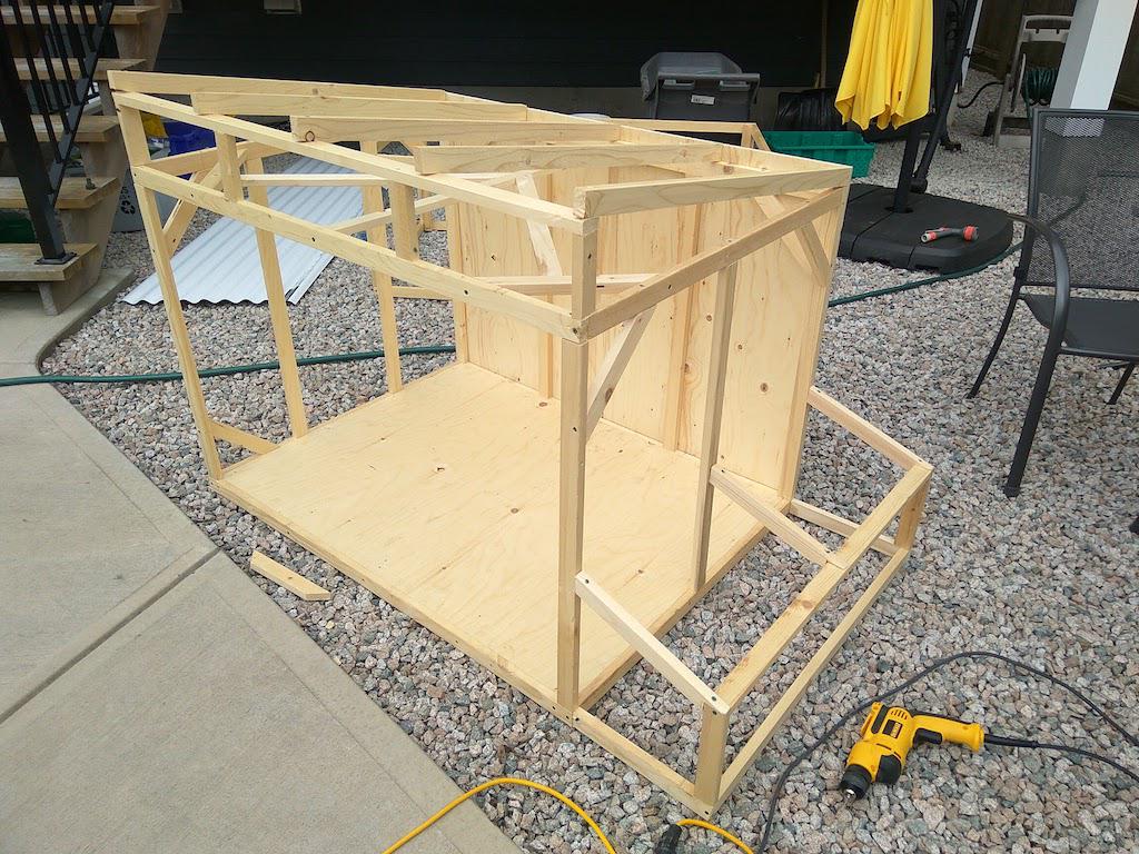 Most coops are made out of an outdoor wood like cedar, but that would have blown our budget for something that we may not keep forever. The other thing is that in general, my engineering style is to see how inexpensive and minimal I can build something, rather than overbuild with an unlimited budget.
