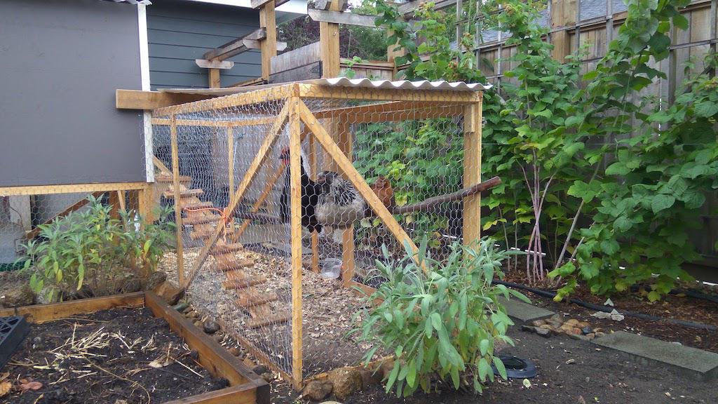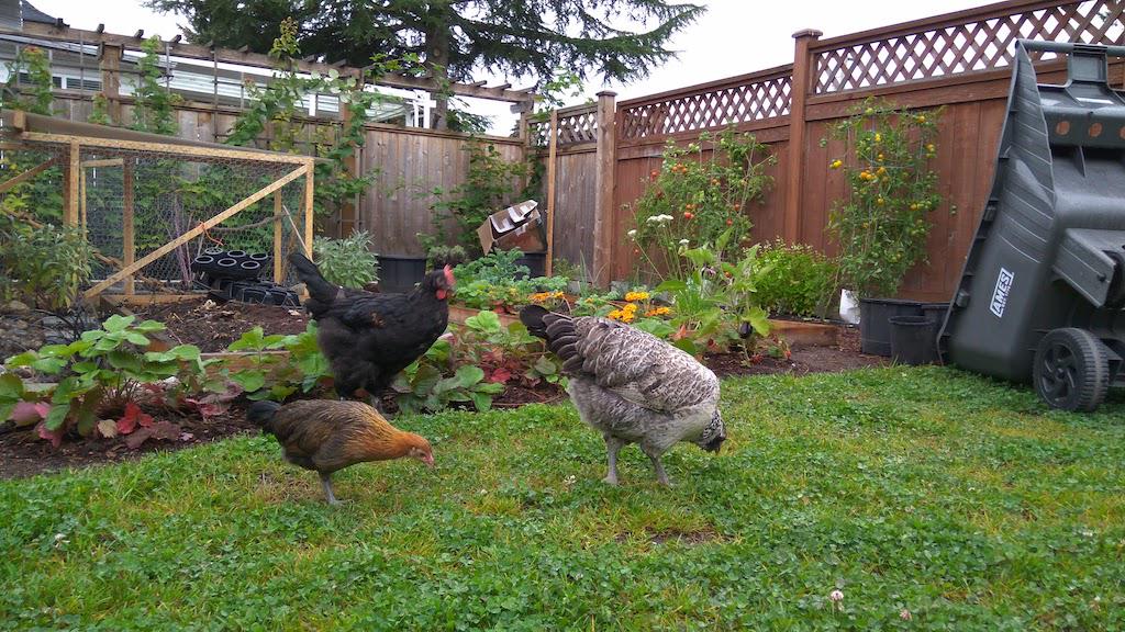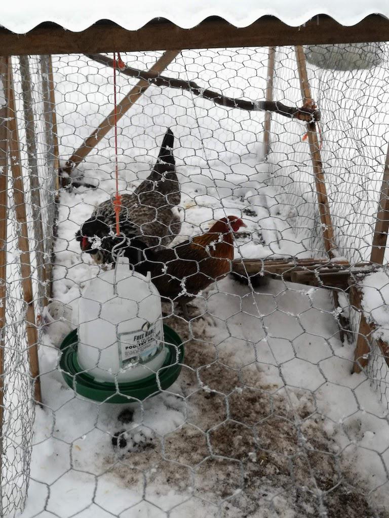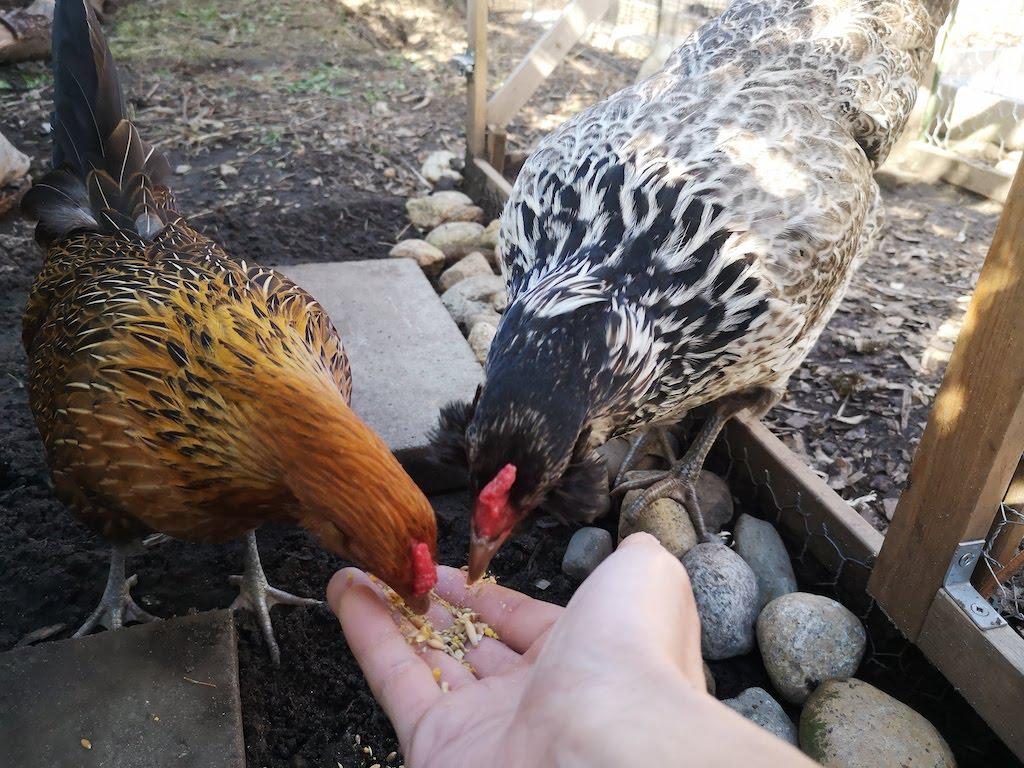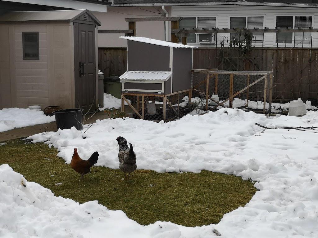 That winter, we had snowfall that stuck (which is rare for the “wet” coast of Vancouver), but the chickens were fortunately ok. We had a heat lamp ready but they didn’t seem to be cold, and we kept the water warm to keep it from freezing overnight.
