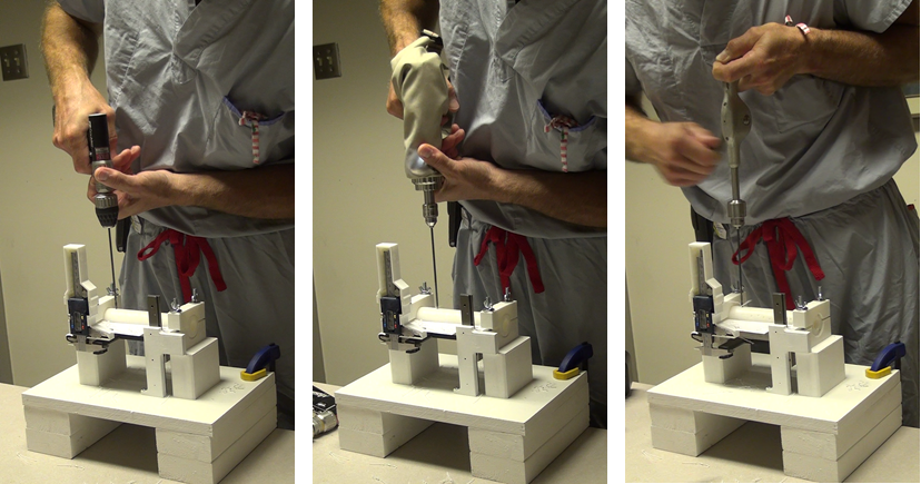 Objective: Develop, conduct, and analyze a study to quantify the drilling performance of the drill cover solution and compare it against a commercial surgical drill and a manual hand-crank drill.