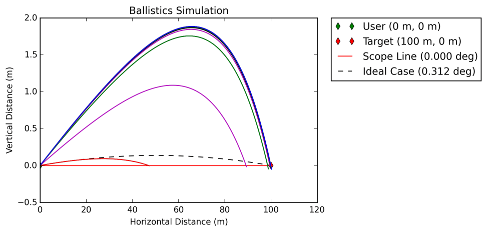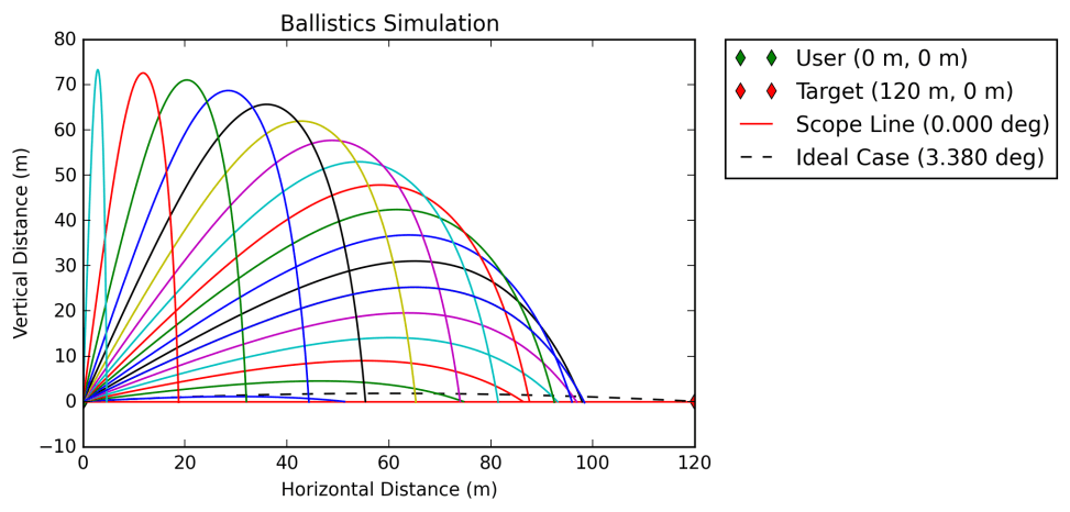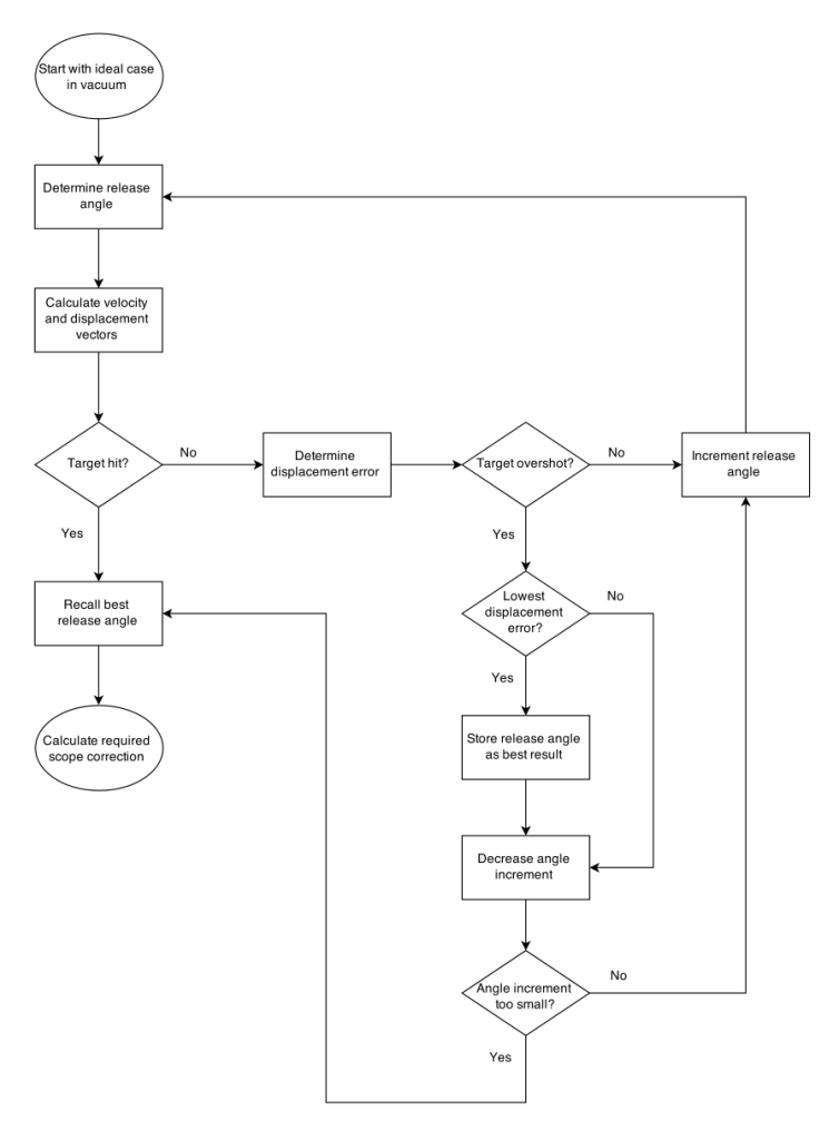Objective: Determine the required release angle given the muzzle velocity and target distance, accounting for external factors.