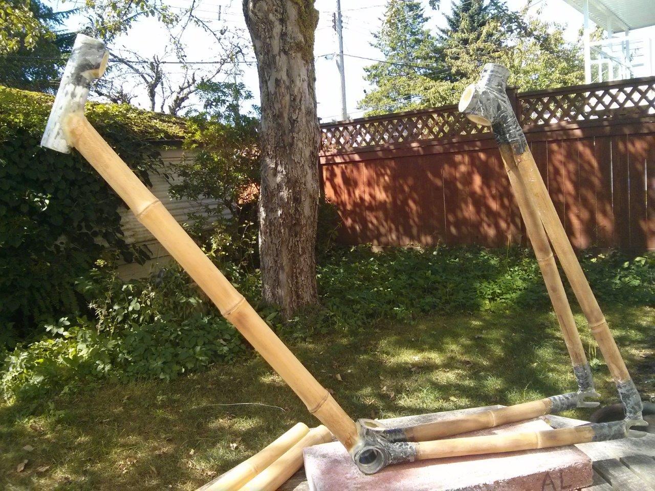I started this project in November 2013 but failed to finish due splitting bamboo. Progress was moving forward: I had the bamboo, carbon fibre, and epoxy ready for frame building, and the poles were in the process of being cut and shaped to size. However, winter was quickly approaching and the weather was becoming less and less ideal for carbon fibre layup. The epoxy I was using had a working temperature above 10°C, but the outside temperature was beginning to drop below that. I was able to keep it in its liquid state by using my mother’s hair dryer (don’t tell her though since she still doesn’t know…), but the epoxy wasn’t the main issue. Apparently bamboo is a living thing and doesn’t like drastic changes in temperature. Turns out doing the layup in colder temperatures, then bringing the frame inside to dry in warm, livable temperatures wasn’t good for the bamboo. Moisture is the devil here, and causes the wood to expand and contract based on the current environmental conditions.