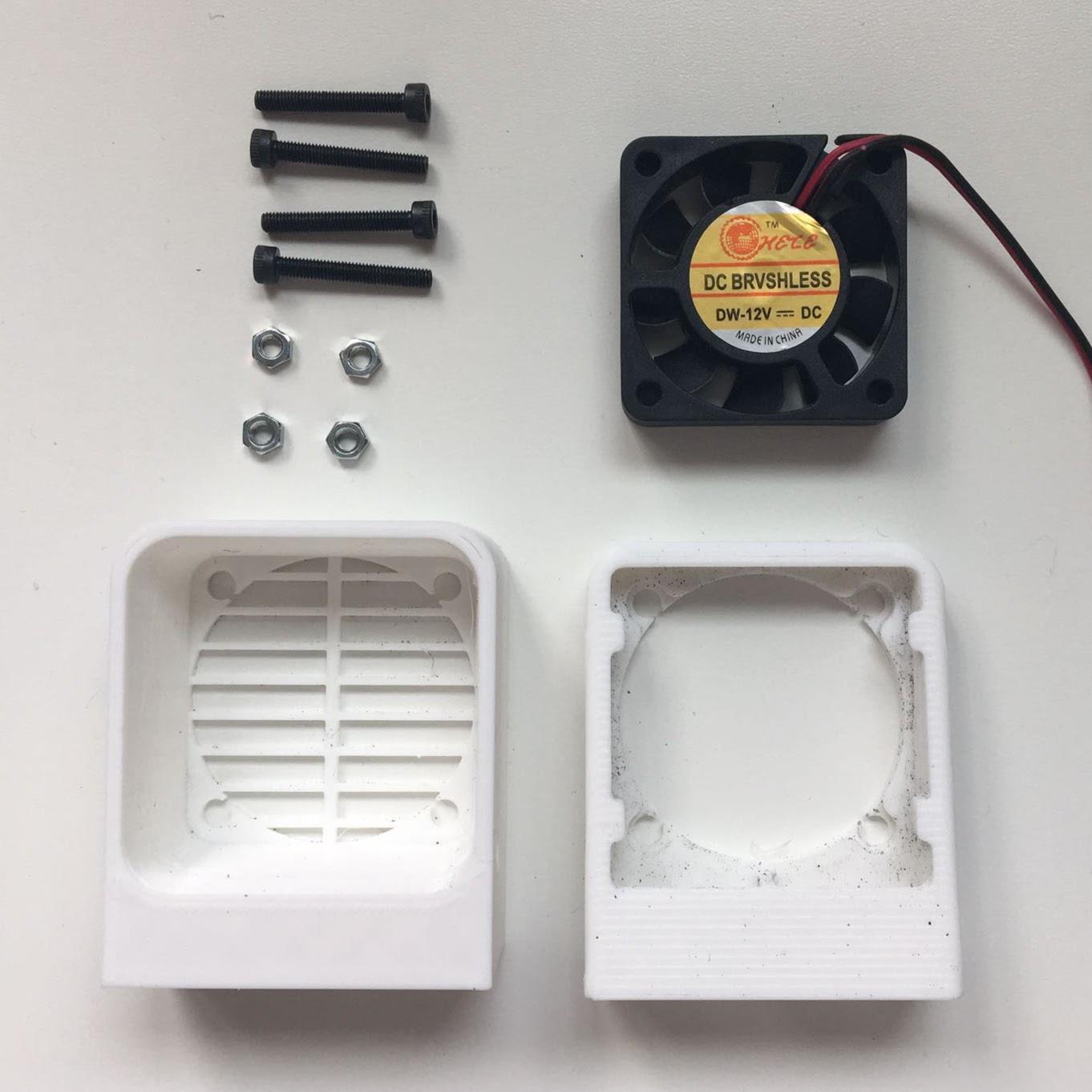 Taking the Hakko FA400-04 as a (heavily-inspired) design reference, I set off to make my own. Given my limited desk size and work area, I wanted to make it small and flexible. I had a 12V 40x40mm fan from eBay kicking around, which fortunately fit my needs quite well. See below for detailed images of the final product.