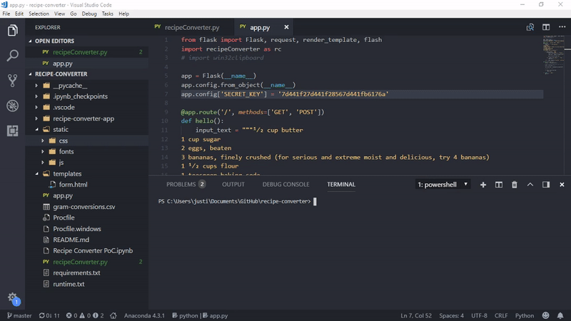 After all that’s been said and done, the recipe converter app is now published on herokuapp.com! It’s a freemium service, so it’s worth checking out for professional development as well.