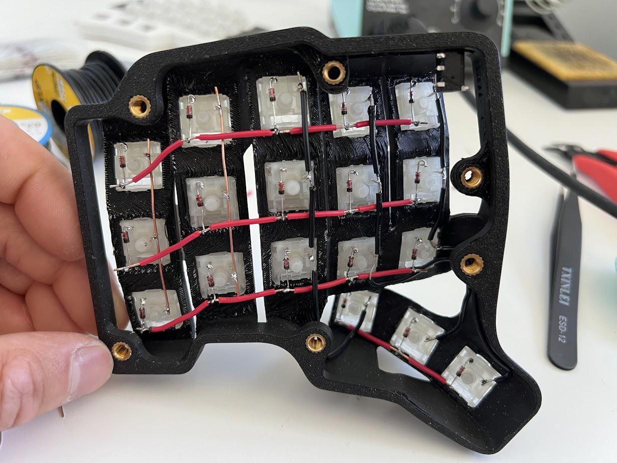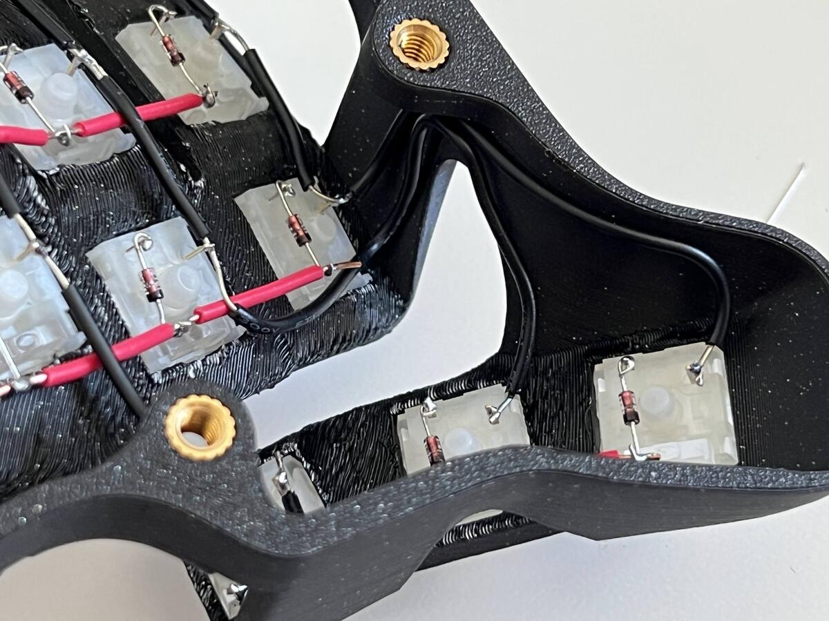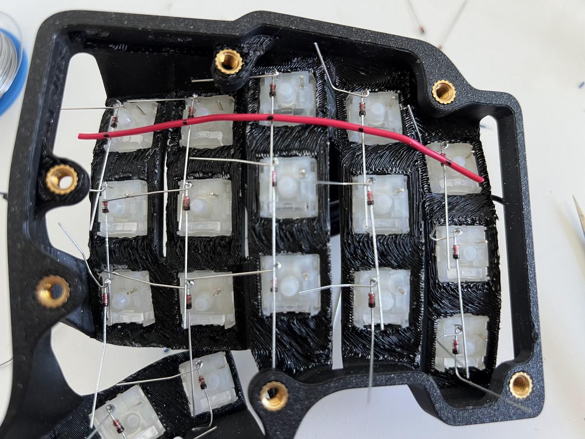 The wiring followed a basic row/column matrix, where the diodes were connected along the rows, and the remaining switch legs were wired directly together in columns.