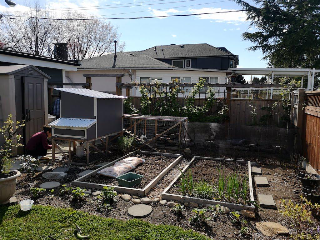 That winter, we had snowfall that stuck (which is rare for the “wet” coast of Vancouver), but the chickens were fortunately ok. We had a heat lamp ready but they didn’t seem to be cold, and we kept the water warm to keep it from freezing overnight.