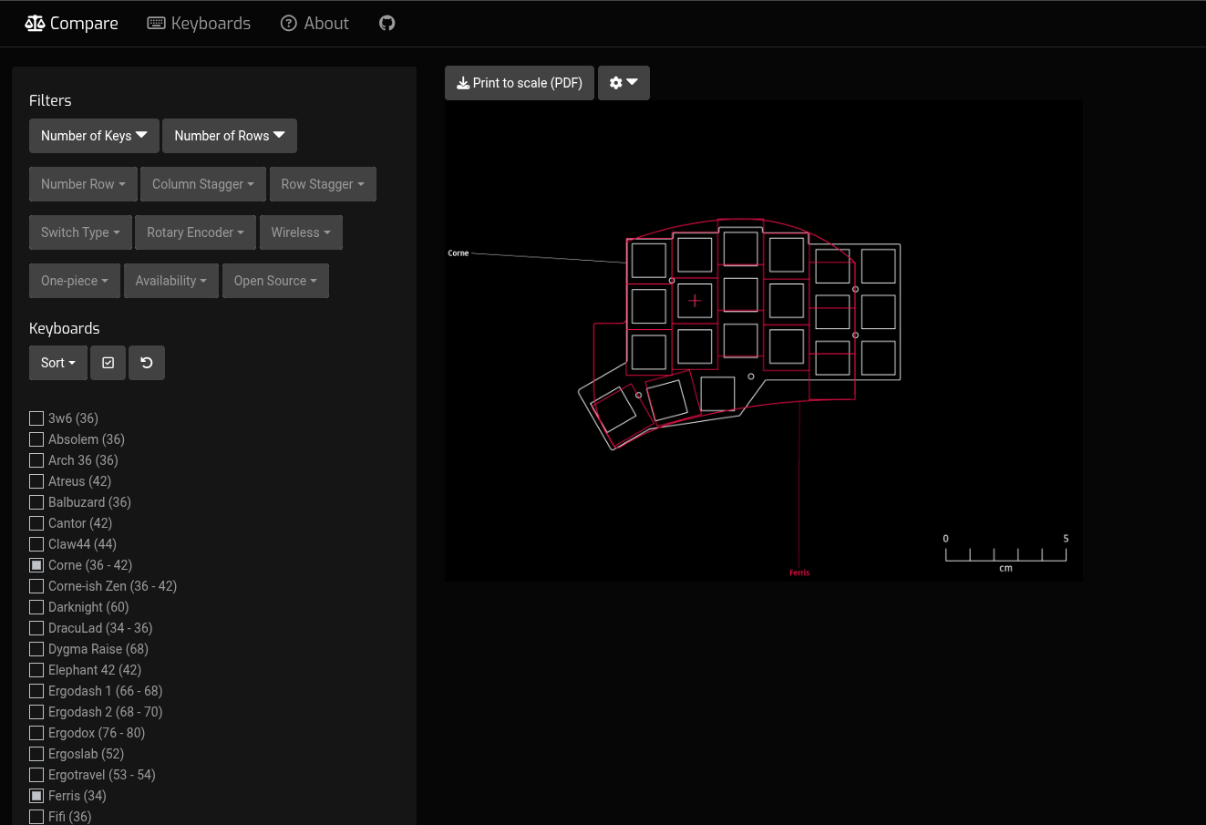 Web app to compare the physical sizes of common keyboards. (Source: SplitKB Compare)