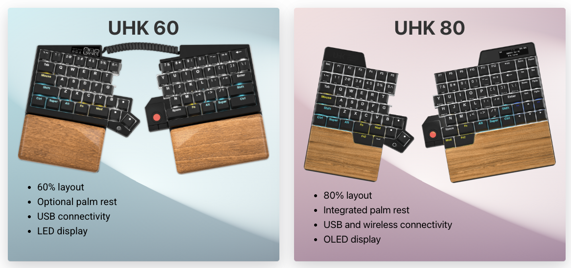 UHK 60 and 80 variants. (Source: Ultimate Hacking Keyboard)